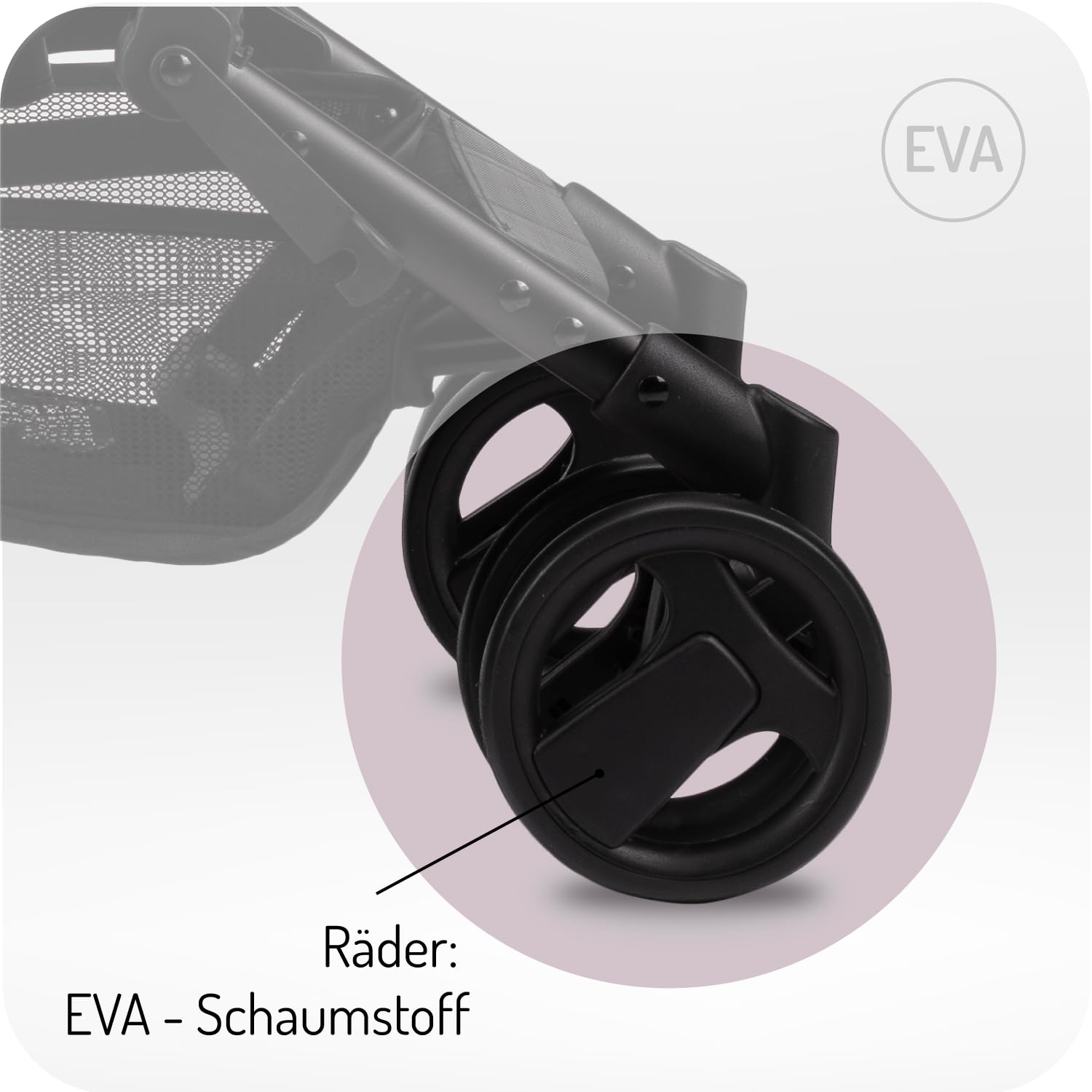 - Ideal zum Shoppen und Spazierengehen: Die unplattbaren, sehr wendigen Räder verfügen über eine hervorragende Dämpfung. Ausgestattet mit einem stabilen Einkaufskorb ist der Kinderwagen ein perfekter Begleiter im Alltag;